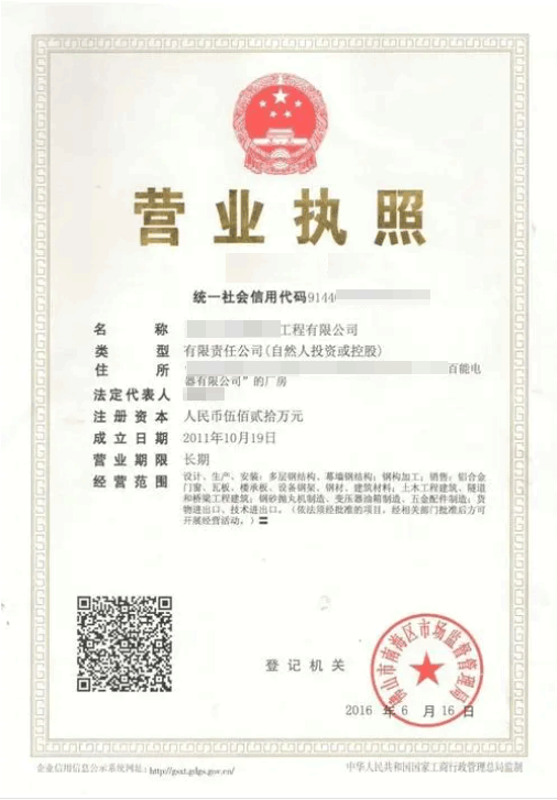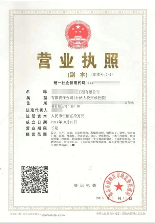 營業執照副本